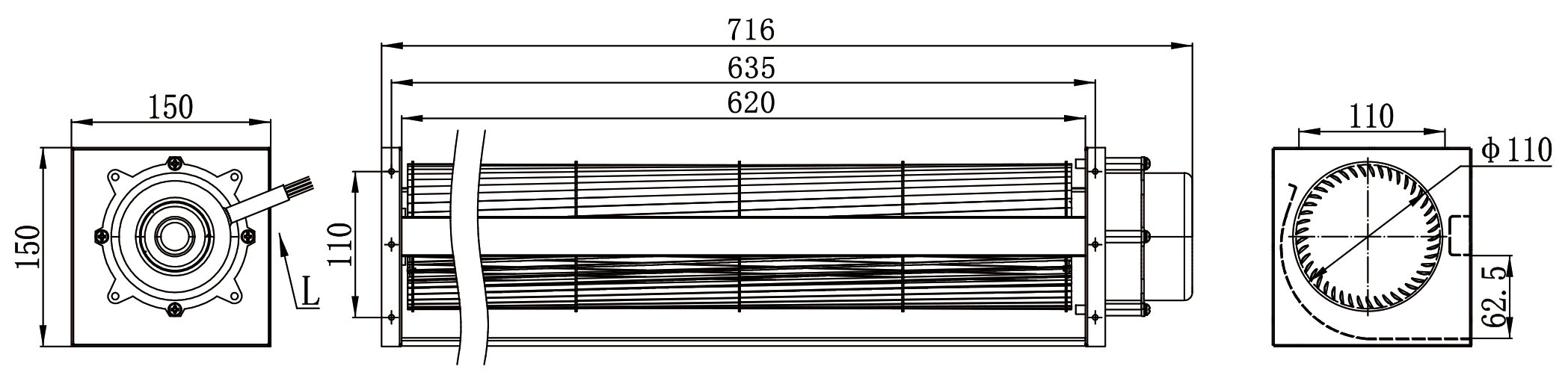 | Longueur de la sortie d'air | 620mm |